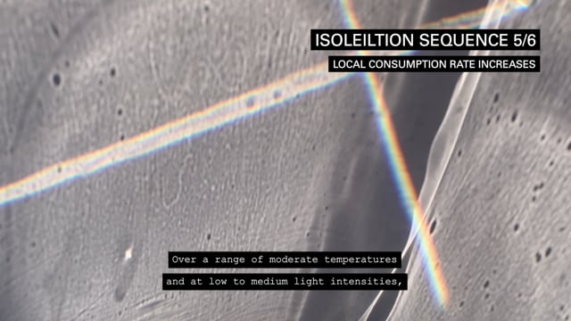 The visuals were therefore created with the two most important components necessary for the photosynthesis process. Water and light, forming abstract forms in harmony, which do not represent the process of photosynthesis scientifically but in a transferred way.